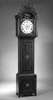 the 19th century twin train movement with anchor escapement striking on a bell, false plate marked BIRMINGHAM, the enamelled dial painted to the arch with characters in a highland scene and the seasons to the spandrels, with Roman chapters and subsidiary seconds and date dials, in an Edwardian mahogany case, the arched hood with carved cresting and turned columns, the trunk with dentilled cornice and inlaid door raised on panelled base with shaped apron