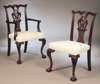 including two carvers each with moulded rail and uprights with peirced splat centred by a tassle, overstuffed seat and acanthus carved cabriole front legs with ball and claw feet (12)