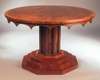 the crossbanded quarter veneered circular tilt top with scalloped frieze and ball pendents, raised on octagonal pedestal with columns at each angle and corresponding massive stepped plinth