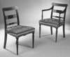 including two carvers, each with satinwood banded chamfered bar back with pierced and rosette carved mid rail between reeded uprights, the overstuffed seat on turned tapering front legs (8)