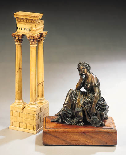 with a laurel headress and holding a lyre, on a mahogany plinth base