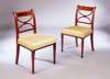 in the Sheraton manner, stamped Thos. Williamson, maker, Boston, each with flame veneered bar back and curved X-splat centred by a rosette, between reeded uprights, the stuffover seat and reeded rail raised on carved and ring turned tapering front legs (2)