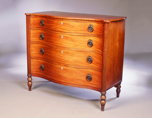 An early 19th century mahogany serpentine chest of drawers