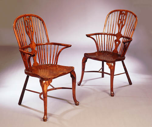 A pair of Georgian yew Windsor armchairs