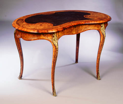 A Victorian burr walnut writing table