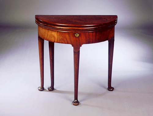 A George II mahogany demilune tea and card table