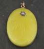 both sides decorated with bright yellow guilloche enamel, applied to the front with a rose cut diamond set star, with sliding action revealing two locket appertures, stamped indistinctly, also stamped with Russian control marks and workman's mark HW