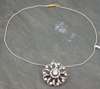 of scrolling circular form, set throughout with graduated old European cut diamonds around the central claw set old mine cut diamond of approximately 0.80cts, suspended from a ropetwist link chain stamped 15c, contained in a fitted case stamped Hamilton & Inches