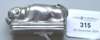 modelled in the form of a crouching pug dog, with gilt collar, red stone set eyes (one stone deficient) and hinged base