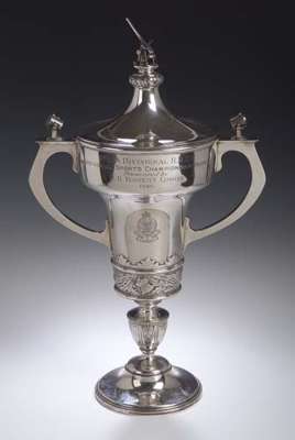 Royal Artillery Interest - A large twin handled trophy cup with cover,
