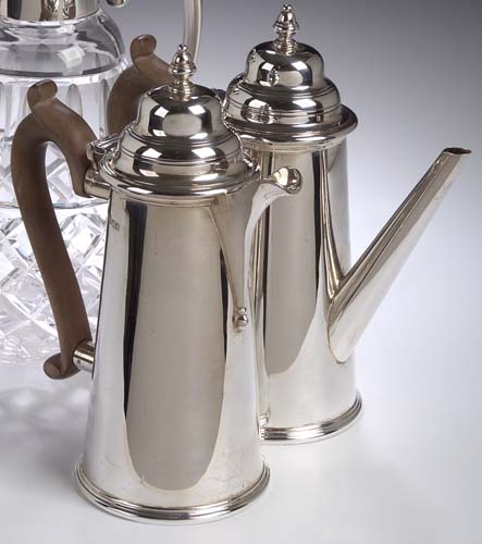 with marks for London 1945, maker Nayler Brothers, each of tapered cylindrical form with domed cover with acorn finial