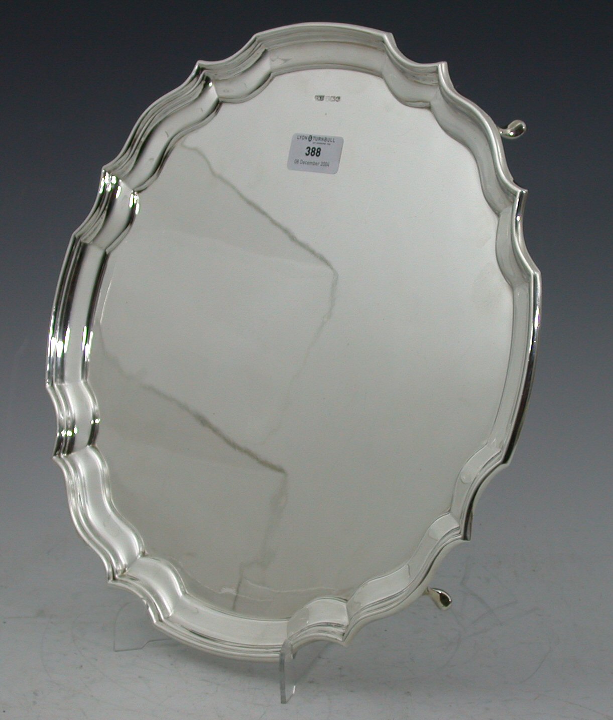 with marks for Sheffield 1941, maker Roberts & Dore Ltd, with moulded pie-crust border on four pad feet