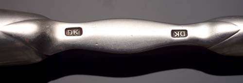 Dublin circa 1777, with makers mark only, DK twice, possibly Darby Kehoe, a pair of sugar tongs with marks for Dublin circa 1790, possibly William Law, of bright cut form, also a sauce ladle with marks for Dublin circa 1825, Smith and Gambie (3)