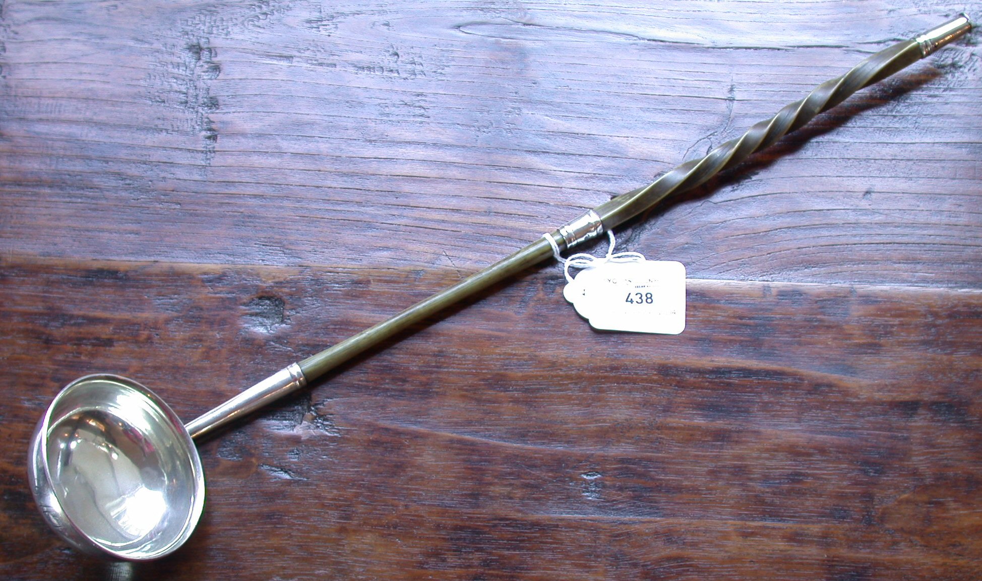 with marks for Greenock circa 1820, Thomas Davie, circular bowl engraved initials, wrythen whalebone handle with mounts