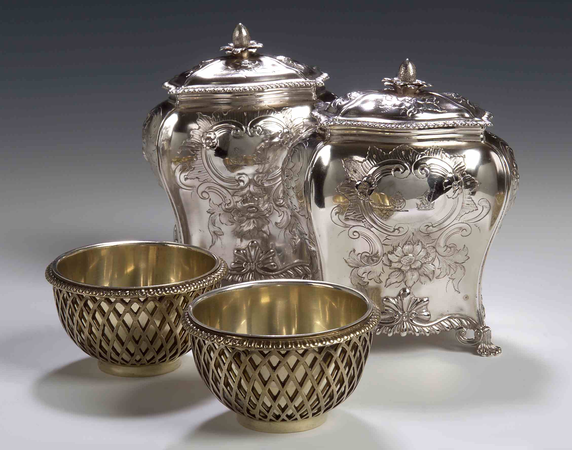 One slightly larger indicating this is probably the centre and one of the smaller caddies from the traditional set of three