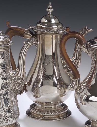 with marks for London 1759, Thomas Howell, of plain baluster form, engraved plain cartouche, clasped spout, gadroon rim