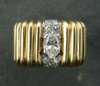 the central marquise cut diamond set within a vertical border pave set with single cut diamonds, to a heavily fluted tapered band