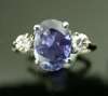 the central claw set oval cut sapphire flanked to either side by a round brilliant cut diamond