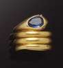 designed as a coiled snake with oval cut sapphire set head and rose cut diamond set eyes