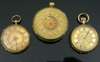 gold decorated dial, fusee movement, with foliate chased rim to the case, together with two gold cased Victorian fob watches