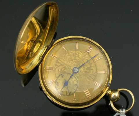 in engine turned hunting case, the gilt dial with decorated ground and subsidiary seconds dial, the enclosed movement inscribed JASH Tyrer, Clerkenwell, London
