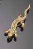 with central demantoid garnet border within a surround of seed pearls, with circular cut ruby eyes