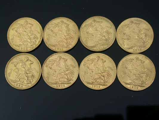 Eight assorted Sovereigns,