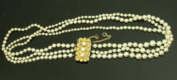 A cultured pearl three row necklace,