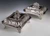 with marks for Edinburgh 1806, maker GF, of shaped rectangular form, each with central acorn and foliate cast handle and later foliate scroll decorated border to a stippled ground, with engraved armorial for LAIRD of GLENHUNTLY, Renfrewshire impaling SCOTT, initialled, raised on four foliate scroll cast feet