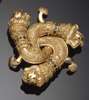 of knotted design composed of three lions' heads each with circular cut emerald set eye and collar