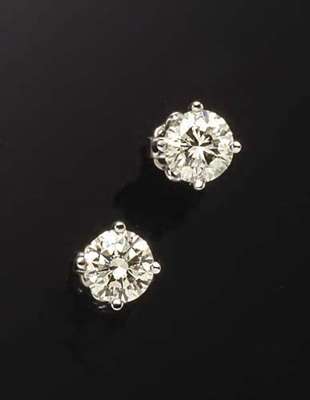 A pair of 18ct white gold mounted diamond earrings,