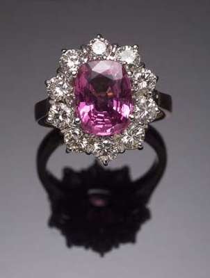 Estimated weights: pink sapphire 3.67cts; diamonds 2.29cts total