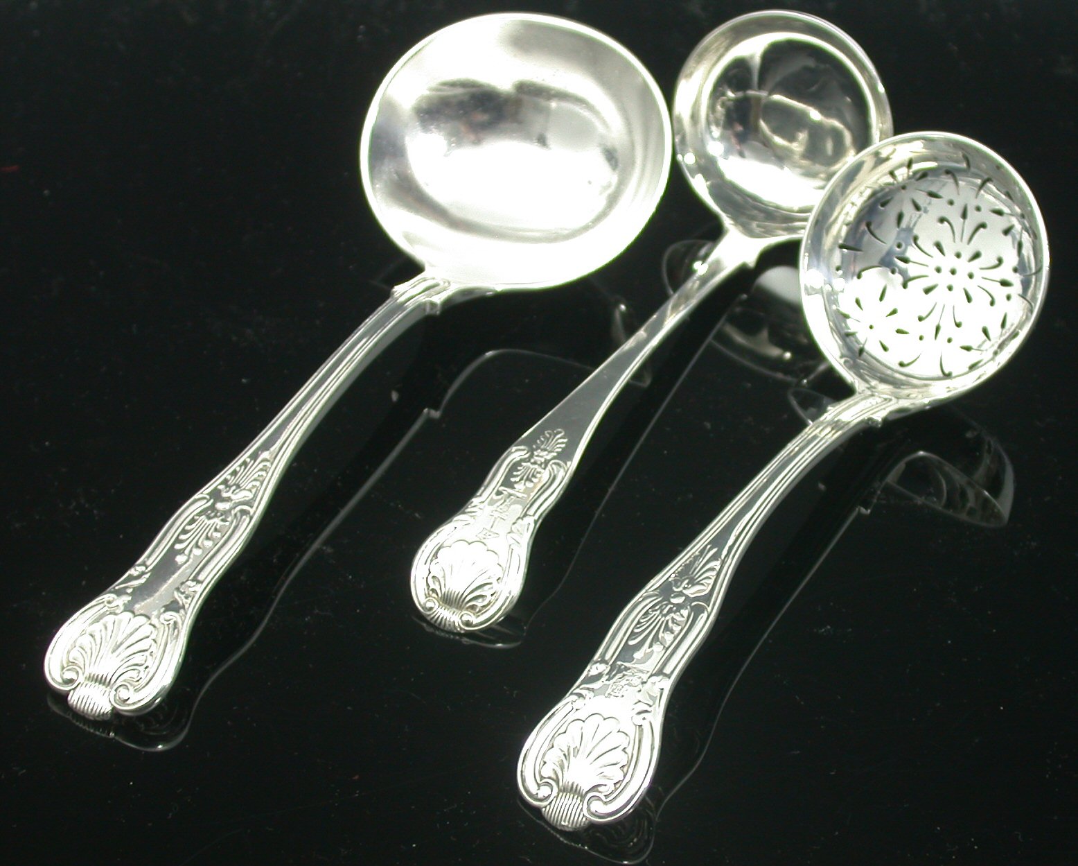 Six assorted King's pattern ladles,
