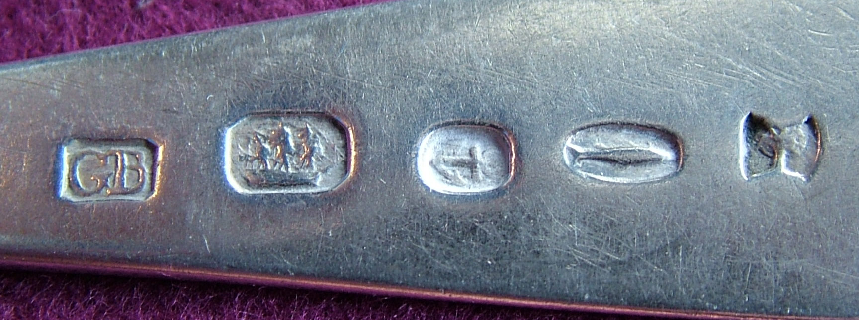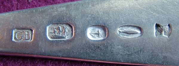 with marks for Greenock circa 1836, by George Buchanan, with five marks GB, ship, anchor, fish and oak tree, of Pointed End pattern, initialled (4)