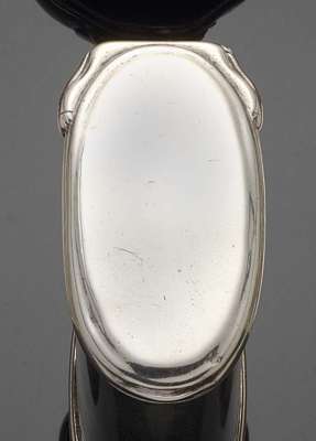 circa 1765, maker Coline Allan, marked CA to base, of plain upright form and oval section, with threaded rims and flat hinged cover, engraved AR in script to the base, with gilt interior