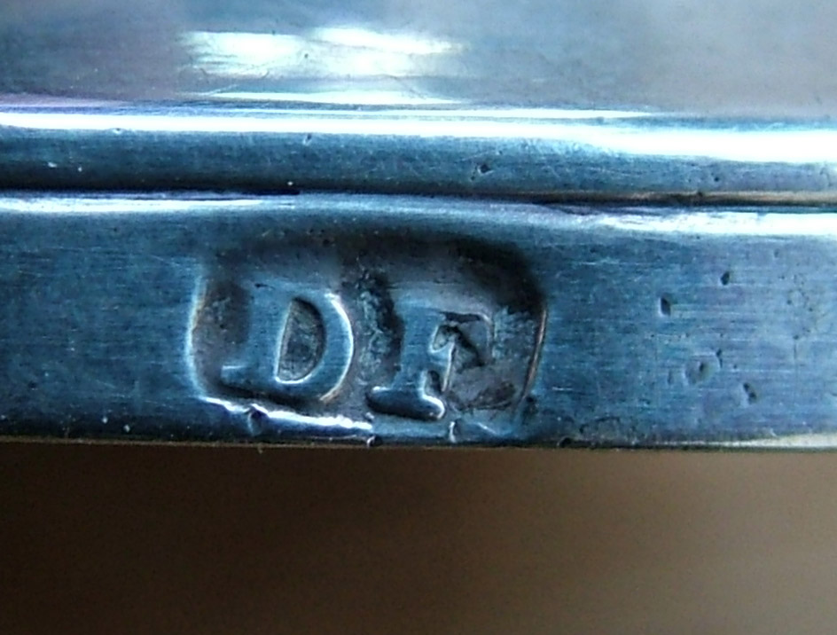with marks for Inverness circa 1830, maker Donald Fraser, marked DF and INS, as well as DF to opposite side, of traditional form, with central engraved initial R within a garter