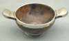 apparently unmarked, with mounted rims and integral handles, the bowl applied to the centre with a circular plaque engraved with a garter inscribed SGUAB AS'E around a thistle
