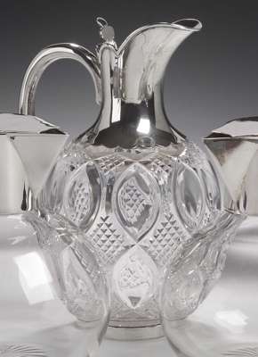 with marks for London 1894, maker John Grinsell & Sons, of ovoid form, with scalloped edges to the mounts, flat hinged cover with trefid thumb-piece and plain loop handle