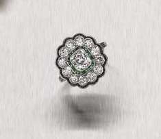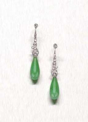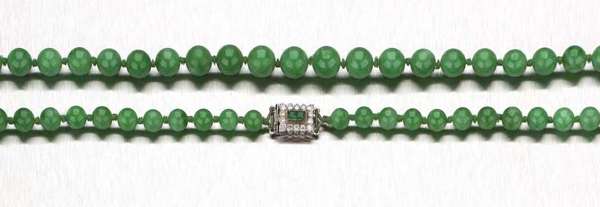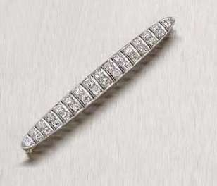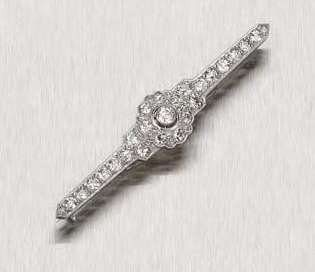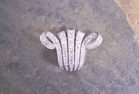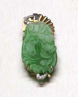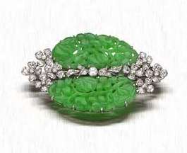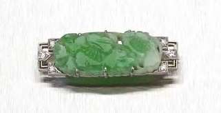 An Art Deco 18ct white gold and platinum mounted jade and diamond brooch,