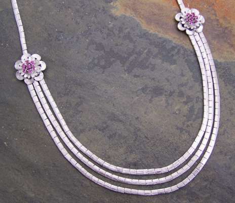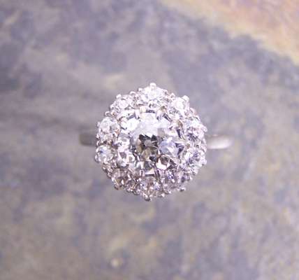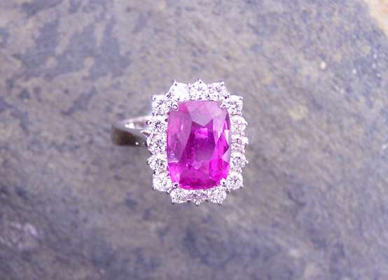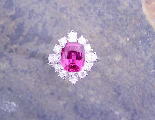 An 18ct white gold mounted pink sapphire and diamond cluster ring,