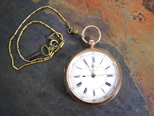 A late Victorian 9ct gold open faced chronograph pocket watch,