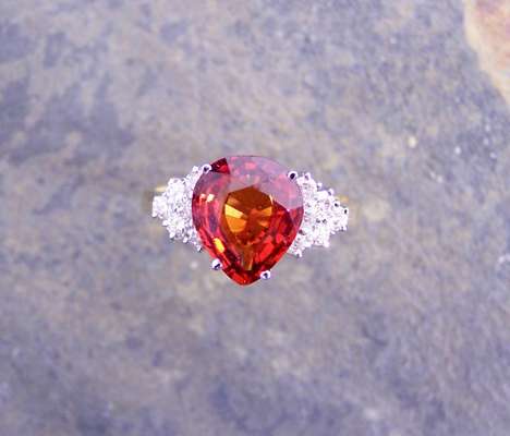 An 18ct gold mounted orange sapphire and diamond cluster ring,
