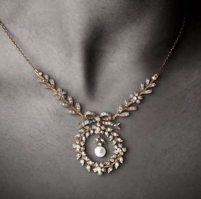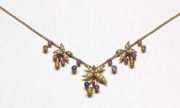An Edwardian style 18ct gold enamel decorated pendant with chain,