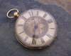 the gold coloured dial with black roman numerals and hands, foliate engraved to centre, with key wound movement, cuvette initialled and case enamelled to reverse in two shades of blue and black, with key