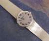 the gold circular dial with black roman numerals and hands, fitted to a satin finished interwoven bracelet, contained in a Hamilton & Inches fitted box