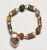 alternately composed of faceted oval and octagonal pillar shaped assorted agate links, with padlock clasp, set to the front with a heart shaped agate cabochon, with glazed hair panel to reverse, additionally inscribed SIR WALTER SCOTT