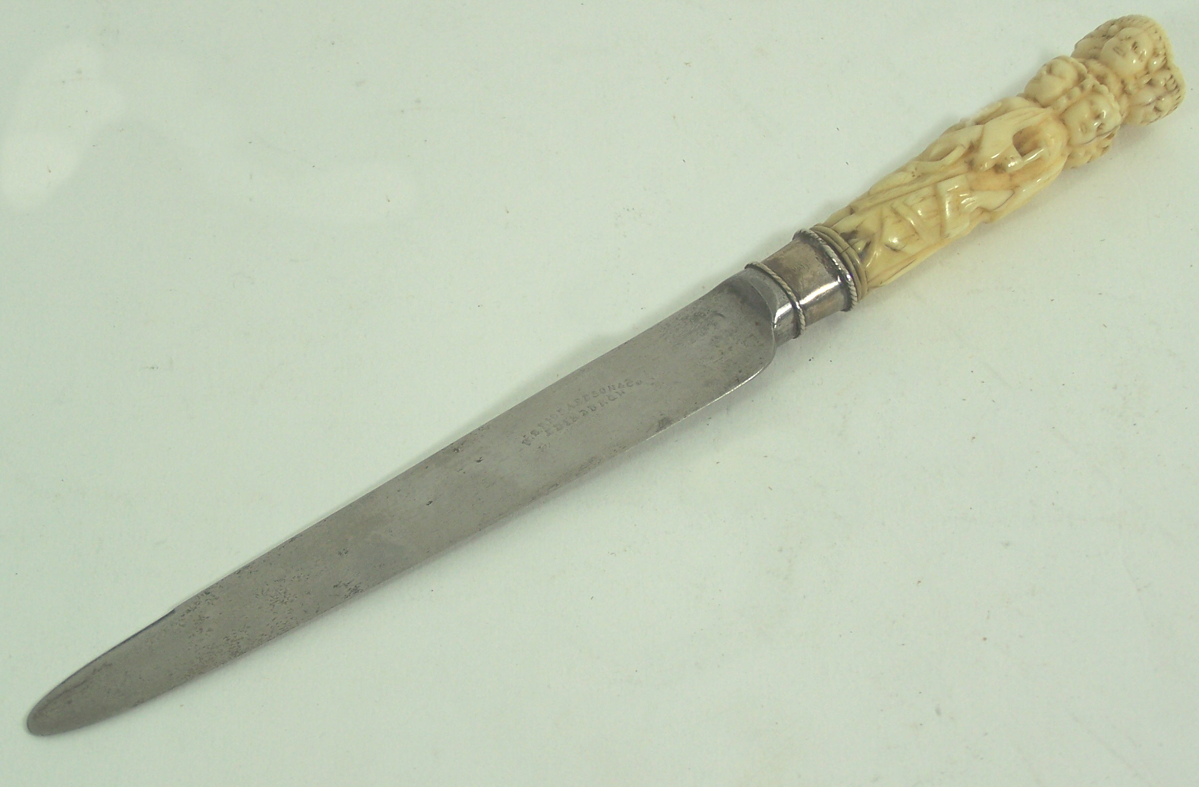 the steel blade inscribed R. S. Richardson and Co. Edinburgh, the ivory handle composed of four figures standing back to back and a similar group of heads above