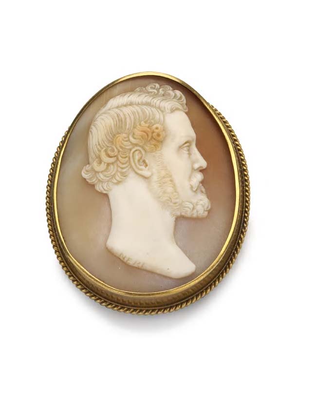 A Victorian gold mounted oval shell cameo brooch signed NERI,