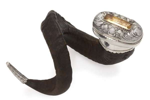 A Victorian Scottish mounted ram's horn table snuff mull,