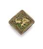 Pertabghar (Rajputana) enamels are produced by melting a thick layer of enamel onto a plate of burnished gold. While the materials are still hot a thin gold layer is applied to the enamel. This layer is typically cut into decorative scrolling motifs, often incorporating mythical animals and foliage, (as illustrated by this piece). Once the enamel hardens, the gold is often further tooled with additional details.